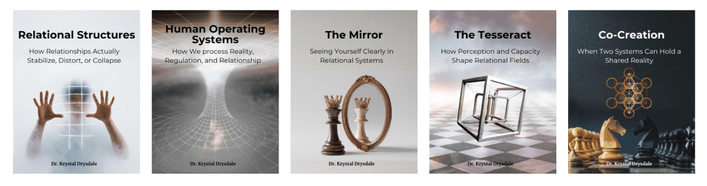 However, this isn’t just self-help in the sense you might be used to. This is human relational literacy. Relational Structures and Human Operating Systems provide the framework while The Mirror, The Tesseract, and Co-Creation show you where you exist inside it.